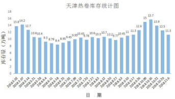 如笔者之前预计,本周天津热卷库存继续小幅下降。据兰格钢铁网统计,10.30-11.5天津热轧市场主要仓库总库存为11.3万吨,周环比降1.2万吨。临近月末贸易商受资金影响,普遍减仓变现,本周出库稍好于入库,加工量有小幅增长。据兰格钢铁网监测,11月6日天津热卷价格跌10元(吨价,下同):3.75-11.75*1500mm普卷包、承、中铁、敬业、安丰4030元,锰加150元,较上周同期跌50元。据贸易商反馈,对于十一月后市情况,普遍持悲观态度,目前热卷下游汽车、家电、机械制造等领域产销均出现下滑,而环保限产力度趋弱,钢厂在高利润以及利好预期的判断下,九、十月份热轧产线检修较少。十月份而言,据不完全统计,仅有包钢、新钢、柳钢发布了新的检修计划,影响热轧供给约25万吨左右,高供给和低需求,使得热卷价格近两个月呈现回落走势。