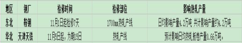 2、本月第一周共有两家钢厂出台热轧检修计划