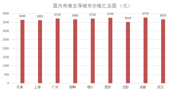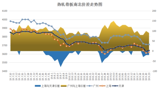 上海(3620元)与天津(3640元),价差为-20,较上个交易日持平;广州(3710元)与上海(3620元),价差90(吨价,下同),较上个交易日缩小10元。