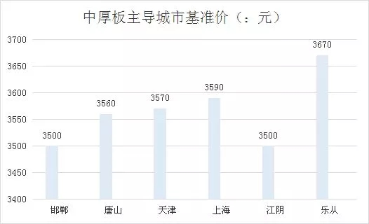 本周价格表现:本周国内中厚板市场价格小幅下跌。目前全国主要城市价格趋同,区域价差基本很小,随着价格的趋弱,区域价差收窄,南北资源流动及消化力度减弱。现国内主导城市邯郸、天津、唐山、江阴、乐从中板主流价格在3500、3570、3560、3500、3670元左右。华北华南价格相对坚挺,华东价格快速下跌,相对承压。
