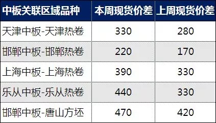 中厚板关联区域品种价差