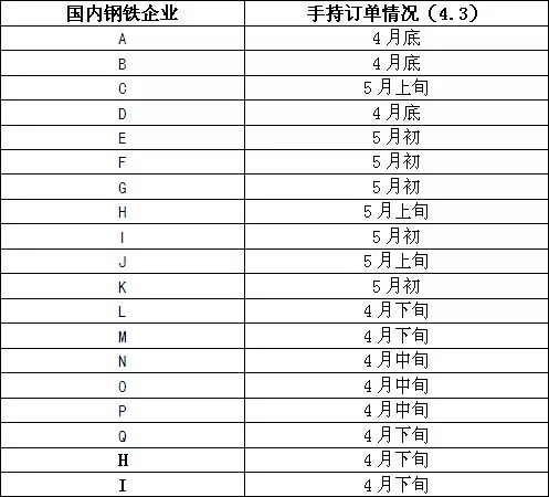钢厂手持订单情况